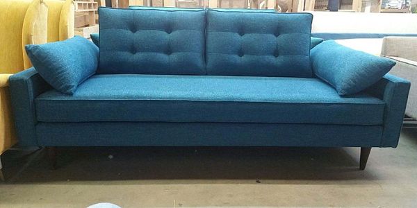 Did you know we have a team of associates who are not only designers, but also manufacture, repair, and transport furniture daily. With our network of upholsters, manufactures, and wholesalers were able to accomplish most anything in a short time. Here is an example of a Mad Men sofa we had duplicated.